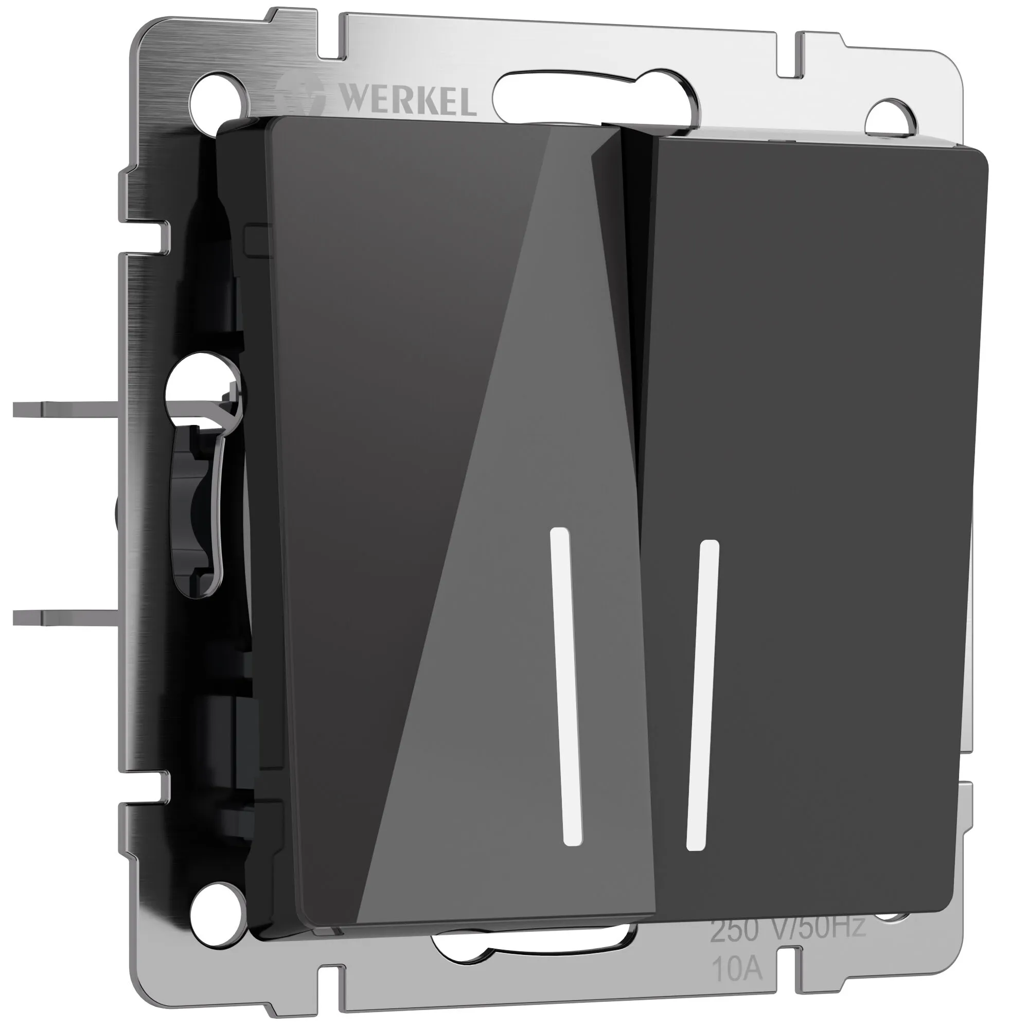 Выключатель двухклавишный проходной с подсветкой Werkel черный акрил — управление светом из двух точек + комфорт в темноте